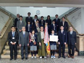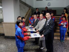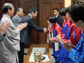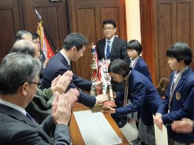 第24回全国中学校駅伝大会女子の部優勝(3連覇) 京都市立桂中学校陸上部女子駅伝チームの京都市スポーツ大賞表彰式(第一応接室)(津田議長,曽我副議長出席)