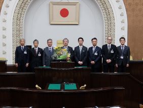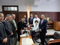 元山王小学校が,車いすフェンシングのナショナルトレーニングセンター競技別強化拠点施設として文部科学省・スポーツ庁から指定されたことを受けて,車いすフェンシング競技関係者が京都市役所を表敬訪問され,議長,副議長共に出席しました。