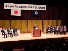 平成29年「消防記念日」表彰式が開催され,議長,副議長共に出席しました。