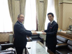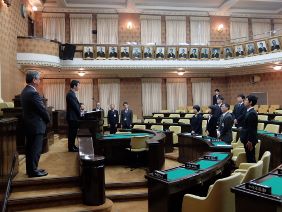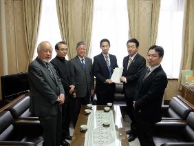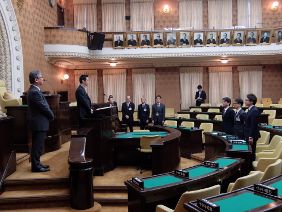 京都市会海外行政調査団からの報告書提出(議長室)(津田議長,曽我副議長出席)