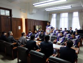 女子プロ野球チーム「京都フローラ」シーズン開幕に伴う表敬訪問(第一応接室)(津田議長,曽我副議長出席)
