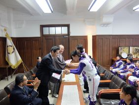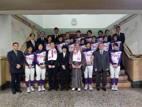 女子プロ野球チーム「京都フローラ」が,シーズン開幕に伴い京都市役所を表敬訪問され,議長,副議長共に出席しました。