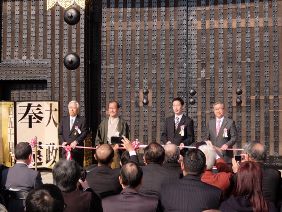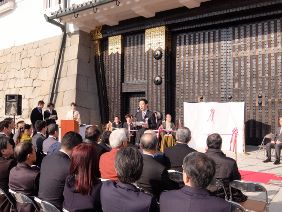元離宮二条城東大手門修理工事完成披露式(二条城東大手門前)(津田議長,曽我副議長出席)