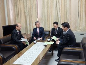 京都市と姉妹都市提携20周年を迎えるプラハ市から,アドリアーナ・クルナーチョバー市長をはじめとするプラハ市代表団が京都市役所を表敬訪問され,議長,副議長共に出席しました。