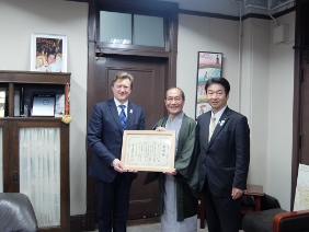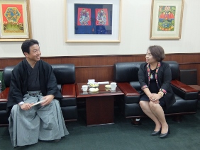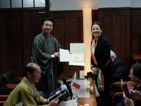 本市の姉妹都市であるフィレンツェ市から,クリスティーナ・ジャーキ副市長及び文化訪問団が京都市役所を表敬訪問され,議長,副議長共に出席しました。