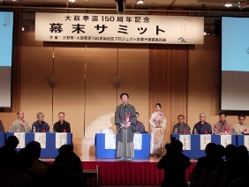 大政奉還150周年を記念し,関係都市参画のもと幕末サミットが開催されるとともに,来たる明治150年に向けた「幕末サミット二条城宣言」署名披露式が行われ,議長が出席しました。