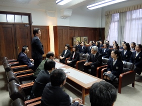 第70回全日本合唱コンクール全国大会に出場される京都市立西京極中学校音楽部の生徒が京都市役所を表敬訪問され,議長,副議長共に出席しました。