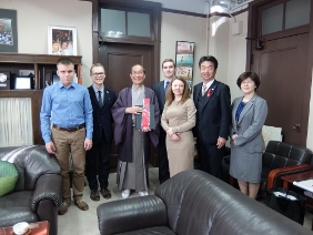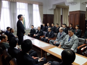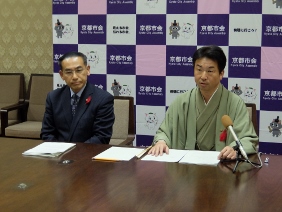 全国高等学校駅伝競走大会に京都代表校として出場する,洛南高等学校(男子)・立命館宇治高等学校(女子)が京都市役所を表敬訪問され,議長,副議長共に出席しました。