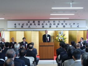 京都府立医科大学 永守記念最先端がん治療研究センター引渡式・感謝状贈呈式が開催され,議長が出席しました。