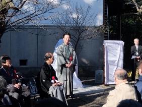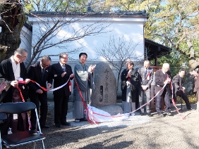 応仁の乱東陣プロジェクト「応仁の乱発端 御霊合戦旧跡」石碑・説明板除幕式(御霊神社)(寺田議長出席)