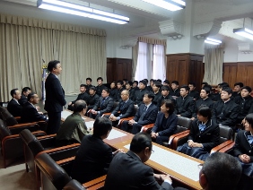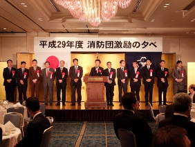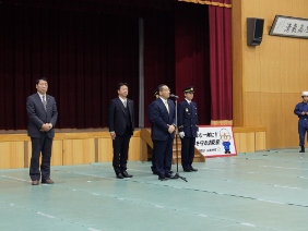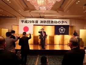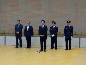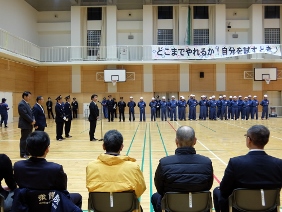 消防団激励巡視が行われ,議長,副議長共に出席しました。本年度は,納所分団(伏見消防団),山階分団(山科消防団),成逸分団(上京消防団)に激励を行いました。