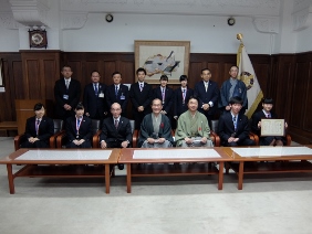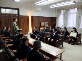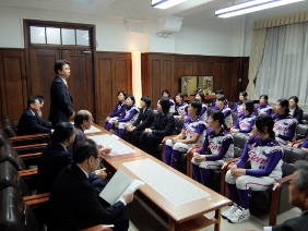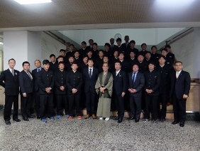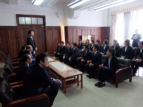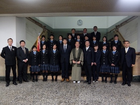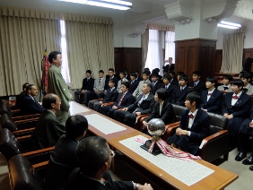 第97回全国高等学校ラグビーフットボール選手権大会・第36回全国高等学校女子ソフトボール選手権大会出場に京都代表校として出場する,京都成章高等学校が京都市役所を表敬訪問され,議長,副議長と共に出席しました。