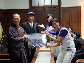 京都フローラが2017シーズン終了に伴う結果報告のため,京都市役所を表敬訪問され,議長,副議長共に出席しました。