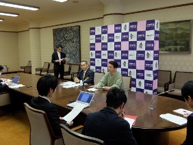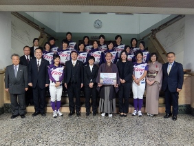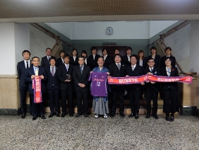 女子サッカー「なでしこ2部リーグ」に初昇格された「バニーズ京都SC」が,報告のため京都市役所を表敬訪問され,議長,副議長共に出席しました。
