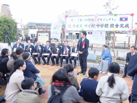 応仁の乱東陣プロジェクト「応仁の乱発端 御霊合戦旧跡」石碑・説明板除幕式が開催され,議長が出席しました。
