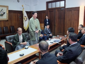 地方自治法施行70周年記念式典において,井上与一郎議員が総務大臣表彰を受けられたことから,議長,副議長出席のもと,伝達表彰式を開催しました。