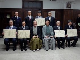 平成30年京都市消防出初式に伴う市長表彰式(第一応接室)(寺田議長,久保副議長出席)