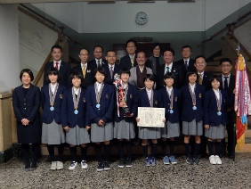 第25回全国中学校駅伝大会 女子の部優勝(4連覇) 京都市立桂中学校陸上部女子駅伝チームの表敬訪問(第一応接室)(寺田議長,久保副議長出席)