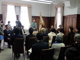 平成30年度京都市芸術文化特別奨励者認定式(第一応接室)(寺田議長,久保副議長出席)