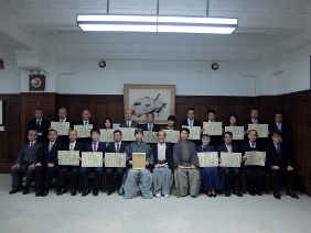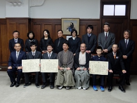 京都市文化芸術産業観光表彰・みらい賞表彰式(第一応接室)(寺田議長,久保副議長出席)