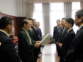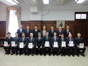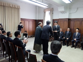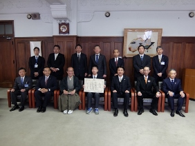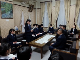 京都教育大学附属桃山中学校の生徒が,「観光政策」について調査・学習し,作成された提案書を京都市会に対して提出され,議長,副議長が出席しました。