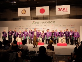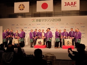 京都マラソン2018 スタートセレモニー,表彰式(スタートセレモニー:西京極総合運動公園陸上競技場,表彰式:京都市勧業館みやこめっせ)(寺田議長,久保副議長出席)