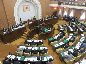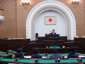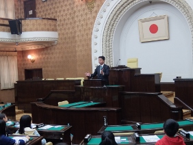 市立京北第一小学校,市立京北第二小学校,市立京北第三小学校の児童が議場見学に来られ,議長が挨拶をしました。