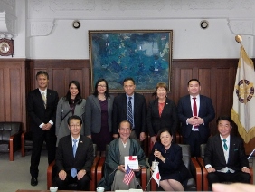 米日カウンシル主催の「アジア系アメリカ人リーダーシップ・デリゲーション・プログラム2018」に参加するアジア系アメリカ人の州議会議員が京都市役所を表敬訪問され,議長,副議長共に出席しました。
