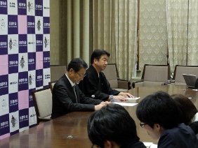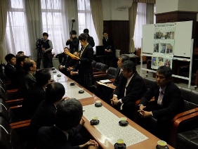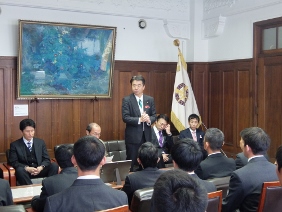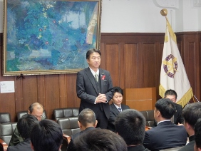 第98回全国高等学校ラグビーフットボール大会出場に京都代表として出場する京都成章高等学校が京都市役所を表敬訪問され,議長が出席しました。