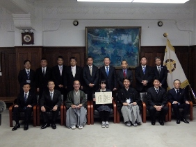 京都市緊急工事等による防災功績者表彰制度に基づく感謝状贈呈式(第一応接室)(寺田議長,湯浅副議長出席)
