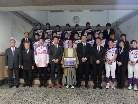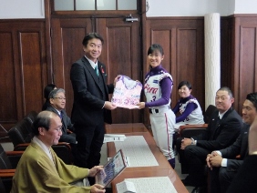 京都フローラが2018シーズン終了に伴う結果報告のため,京都市役所を表敬訪問され,議長,副議長共に出席しました。