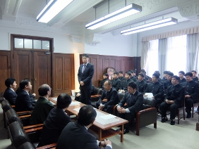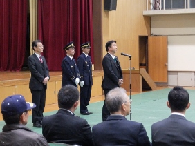 消防団激励巡視が行われ,議長,副議長共に出席しました。本年度は,梅津分団(右京消防団),室町分団(上京消防団)に激励を行いました。
