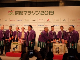 京都マラソン2019 ランナー完走祈願!日本酒で乾杯!!(京都市勧業館みやこめっせ)(寺田議長,湯浅副議長出席)