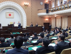 本会議が開催され,冒頭で,昨年12月4日に逝去された故小林正明議員に対し,追悼演説が行われました。その後,市長及び副市長による議案の提案説明等が行われました。