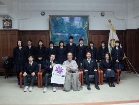 市立堀川高等学校ボストン海外研修に先立つ表敬訪問及び親書授与式(第一応接室)(寺田議長出席)