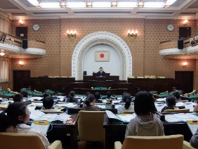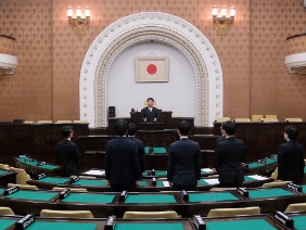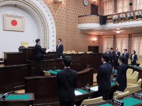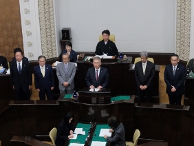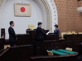 本会議が開催され,議案の採決等が行われました。また,今期限りで勇退される議員の方々に対し,市長と議長がはなむけの言葉を贈り,勇退議員の代表からの挨拶が行われました。