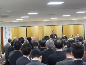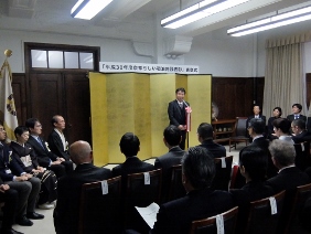 市会事務局人事異動発令式(市会議場)(寺田議長,湯浅副議長出席)
