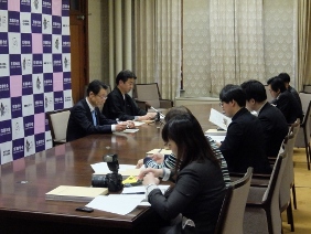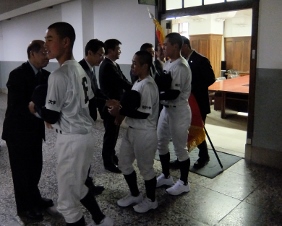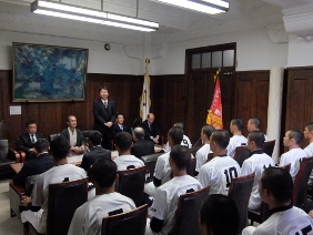第91回選抜高等学校野球大会出場に出場する,龍谷大学付属平安高等学校が京都市役所を表敬訪問され,議長,副議長共に出席しました。