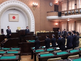 平成31年4月1日付け人事異動に伴い,市会事務局から転出する職員に対する発令式を開催し,議長,副議長共に出席しました。また,新たに転入する職員に対する発令式を開催し,議長が出席しました。