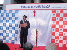 京阪深草駅駅名変更記念式典が開催され,議長,副議長共に出席しました。