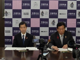 議長記者会見(市会運営委員会室)(山本議長,青野副議長出席)