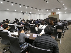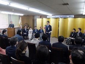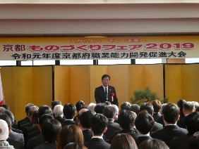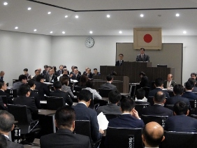 子どもたちとその保護者の皆様に,市会を身近に感じていただくため,京都市会親子ふれあい議場見学会を開催し,議長が挨拶をしました。