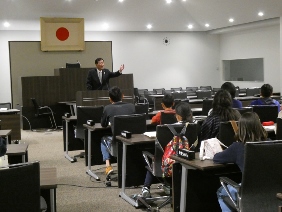 京都市会親子ふれあい議場見学会(市会議場)(山本議長)