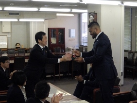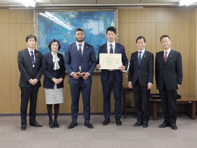 ラグビーワールドカップ2019日本大会ベスト8 アマナキ・レレイ・マフィ選手への京都市スポーツ栄誉賞表彰式が開催され,副議長が出席しました。