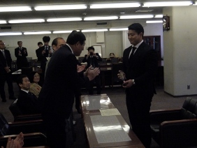 ラグビーワールドカップ2019日本大会ベスト8 坂手淳史選手への京都市スポーツ栄誉賞表彰式が開催され,議長,副議長共に出席しました。