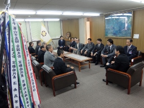 全国高等学校駅伝競走大会に京都代表として出場する,洛南高等学校(男子)・立命館宇治高等学校(女子)が表敬訪問され,議長,副議長共に出席しました。