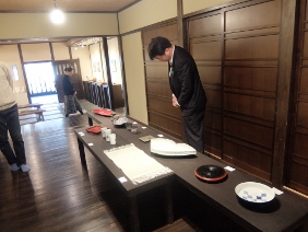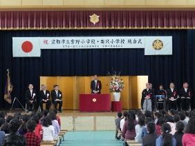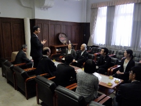市会事務局転入者発令式(市会議場)(寺田議長,湯浅副議長出席)