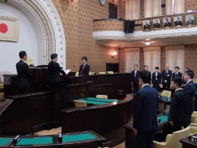 平成31年4月18日付けの人事異動に伴い,市会事務局に新たに転入する職員に対する発令式を開催し,議長,副議長共に出席しました。