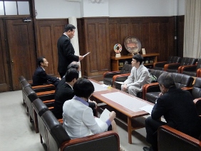 京都市文化芸術産業観光表彰(きらめき賞)表彰式(第一応接室)(山本議長,青野副議長出席)