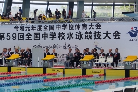 全国中学校体育大会第59回全国中学校水泳競技大会開会式が開催され,議長が出席しました。